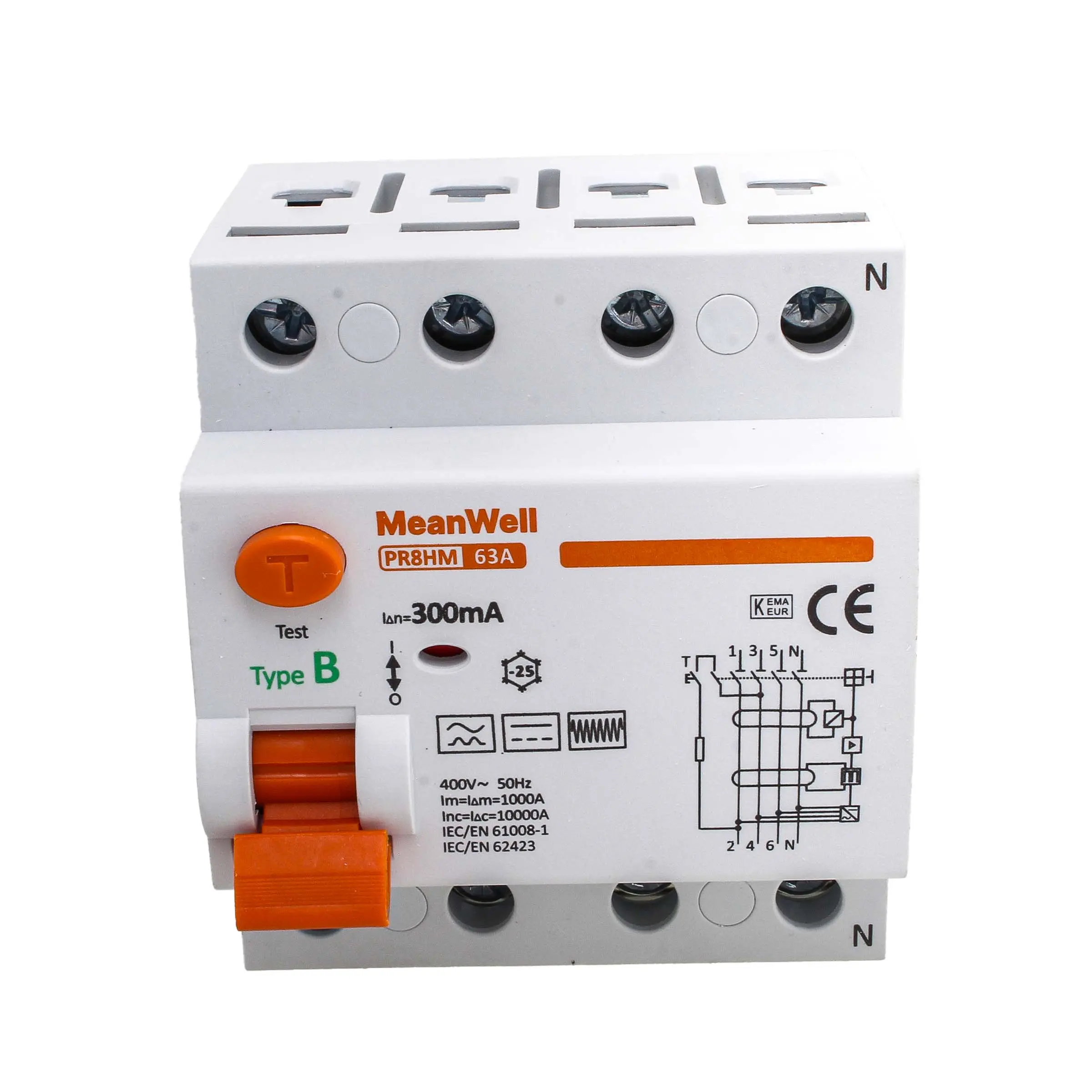 Interruttore Differenziale Puro Meanwell Tipo B 1P+N 2M 10000A 300MA 100A AC 230V IP20 IEC61008-1 / IEC62423 PR8HM