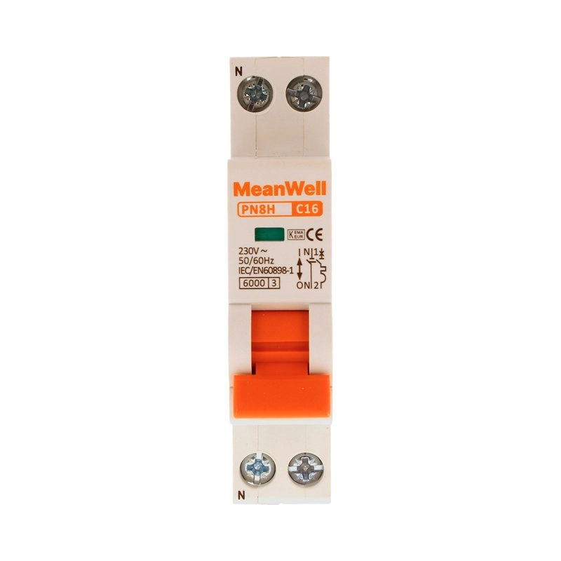 Interruttore magnetetermico meanwell curva c 1 polo+neutro 1m 6ka c10a ac 230v ip20 IEC60898
