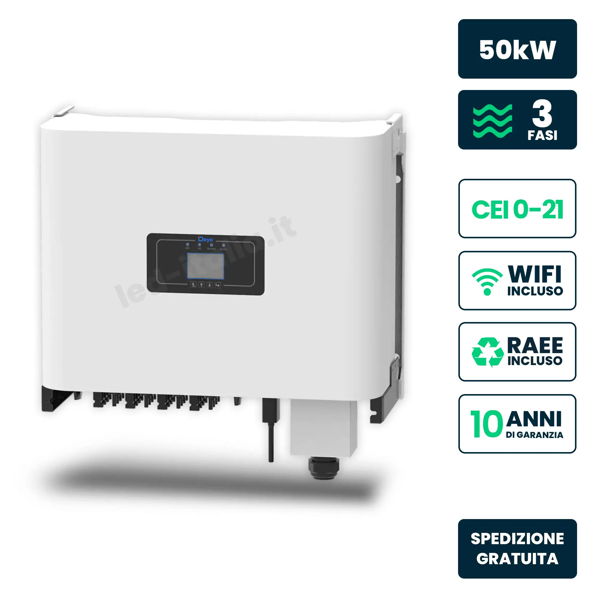 3. Inverter Fotovoltaico di Stringa Trifase Deye 10kW 2 MPPT CEI 0-21 IP65