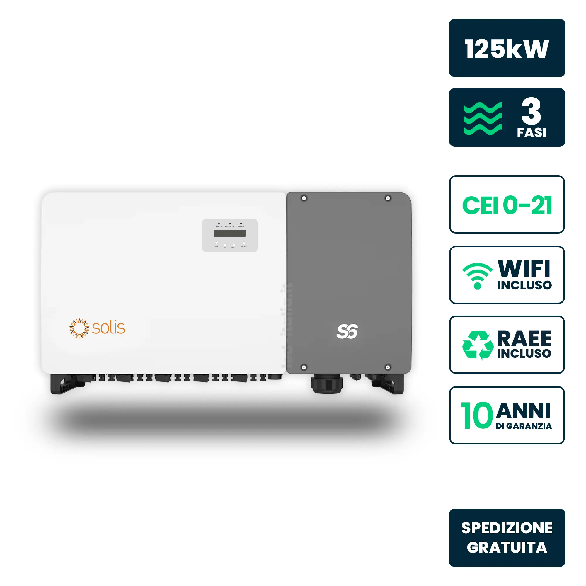 Inverter Fotovoltaico di Stringa Trifase Solis 15kW 2 MPPT CEI 0-21 IP66