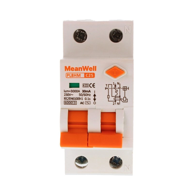 Magnetotermico Differenziale Meanwell Tipo Ac Curva C 1 Polo+Neutro 2M 6KA 30MA C32A 230V IP20 IEC61009