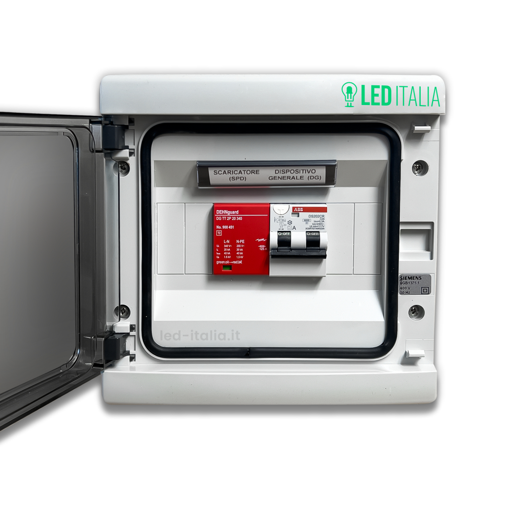 Quadro AC Trifase 10KW 20A 400V 8 Moduli DifferenZiale + SPD ABB / DEHN IP65