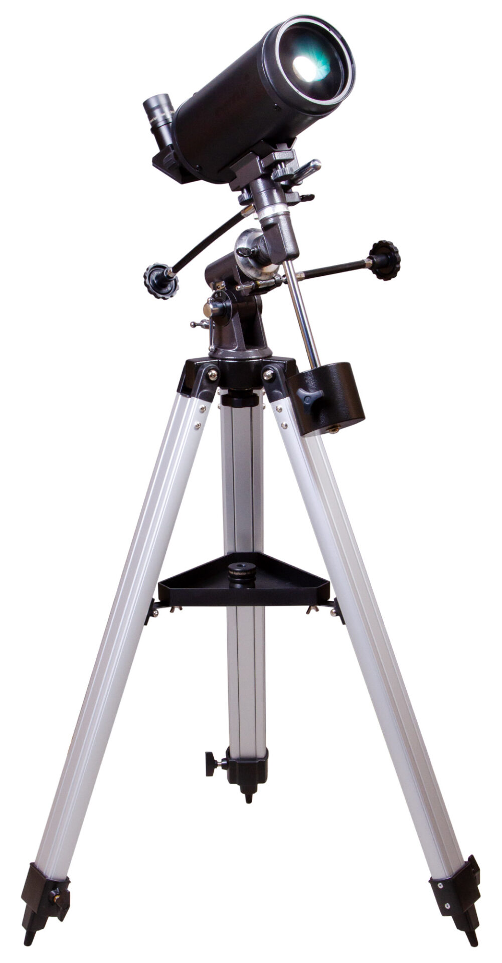 La montatura equatoriale richiede un minore sforzo per effettuare un’accurata localizzazione dei corpi celesti. Gli oggetti astronomici di nostro interesse non sfuggiranno dal campo visivo nemmeno in caso di osservazioni prolungate. La montatura è ancorata a un treppiede in alluminio con vassoio porta accessori. È stabile e affidabile. L’altezza di ogni gamba del treppiede può essere regolata singolarmente, il che consente di posizionare il telescopio su qualsiasi tipo di terreno.