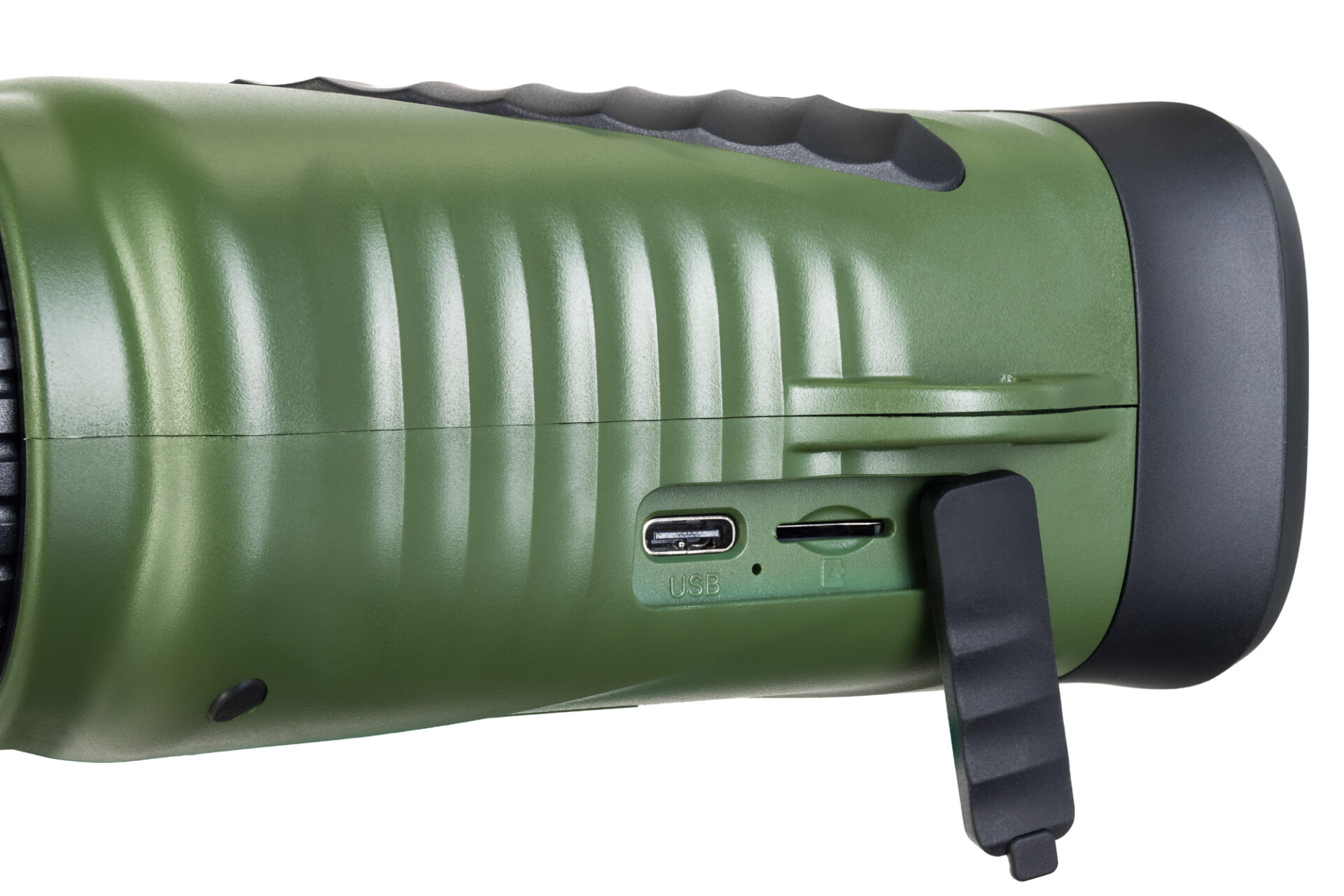 Il binocolo per la visione notturna LEVENHUK Atom Digital DNB200 presentano un videoregistratore integrato, che consente di registrare ad alta qualità: fino a 40M per foto e 2,5K per video. I dati sono memorizzati sulla scheda di memoria. Si noti che il binocolo può supportare schede fino a 128 GB, una capacità grande abbastanza per durare tanto tempo. Per comodità è preferibile fare osservazioni durature nel tempo e catturare foto e video con un treppiede, evitando così scatti mossi. Il binocolo presenta pertanto una filettatura standard.