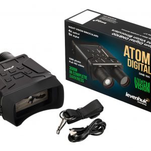 - Visore notturno binoculare LEVENHUK Atom Digital DNB300 Per osservazioni notturne e diurne. Con videocamera e treppiede. Ingrandimento: 4x (ottico), 1–8x (digitale). Diametro lenti obiettivo: 35 mm
